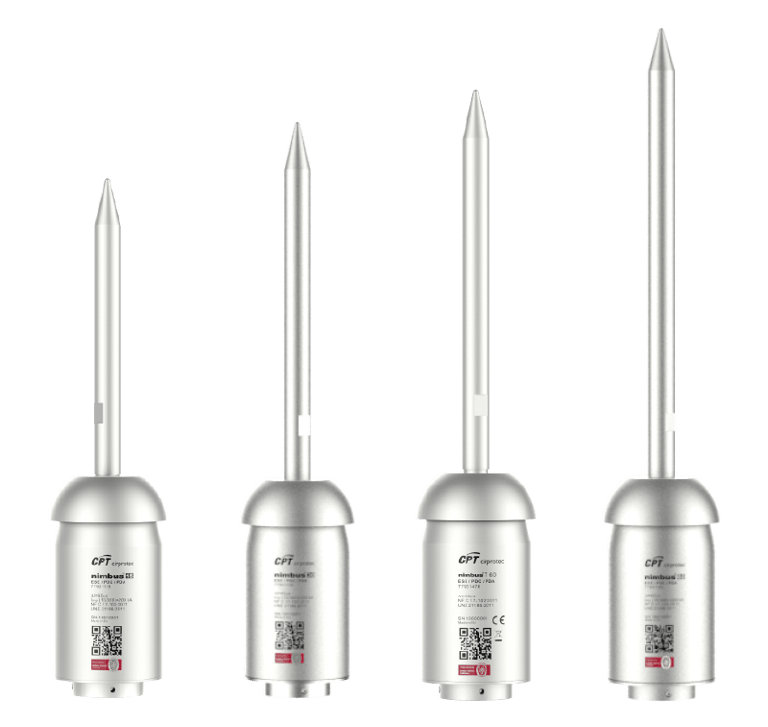 Nimbus® is the series of new generation lightning rods with electronic early streaming emission (ESE). Radius of protection up to 100 m (based on emission times of 15 μs, 30 μs, 45 μs and 60 μs).